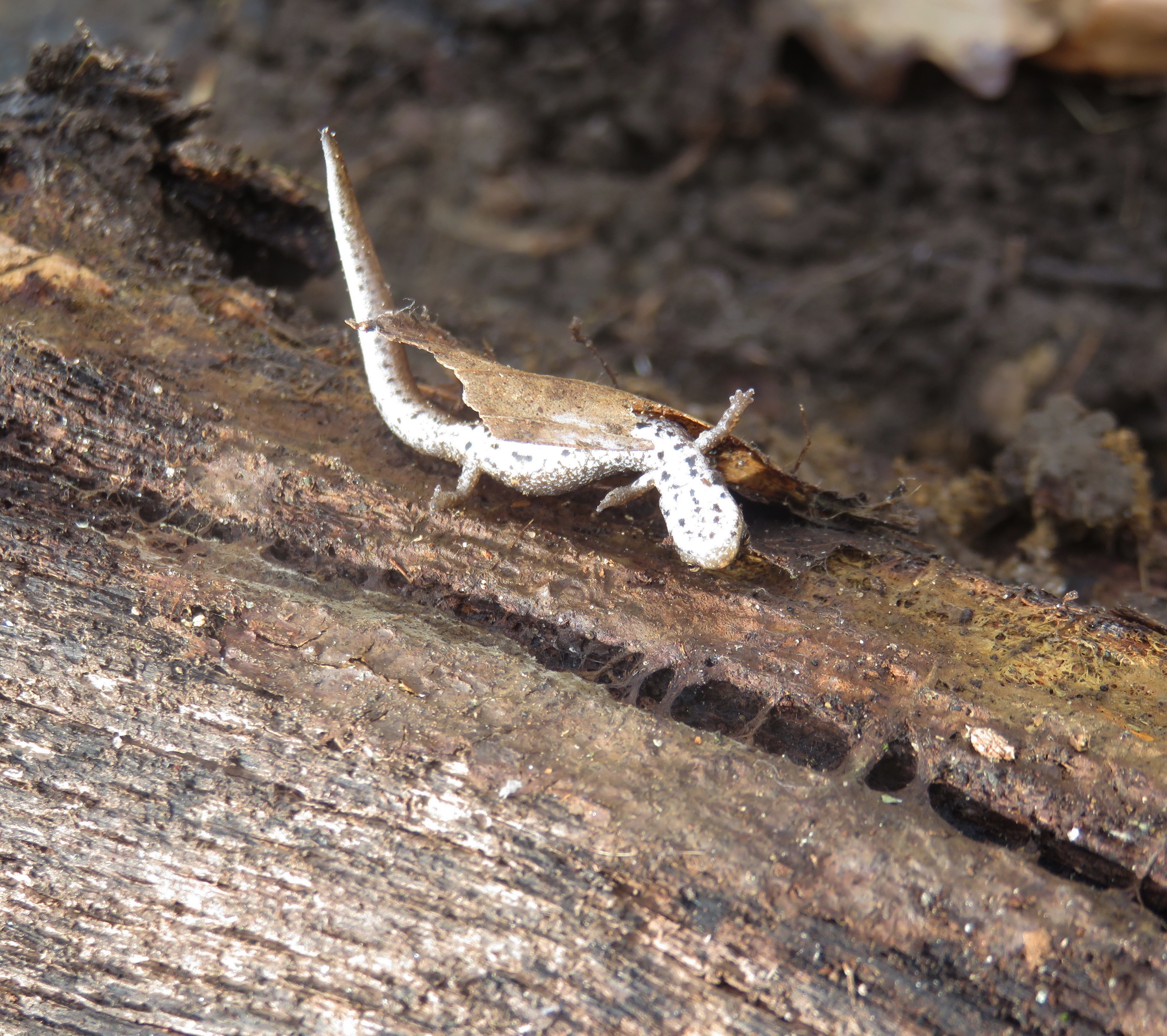 When you first see a four-toed salamander, it’s possible to not recognize them at first. Their back can be reddish brown, and similar enough to the ubiquitous red-backed salamander, that you might mistake it at first glance. If, however, you get a belly-first view, there is no doubt!