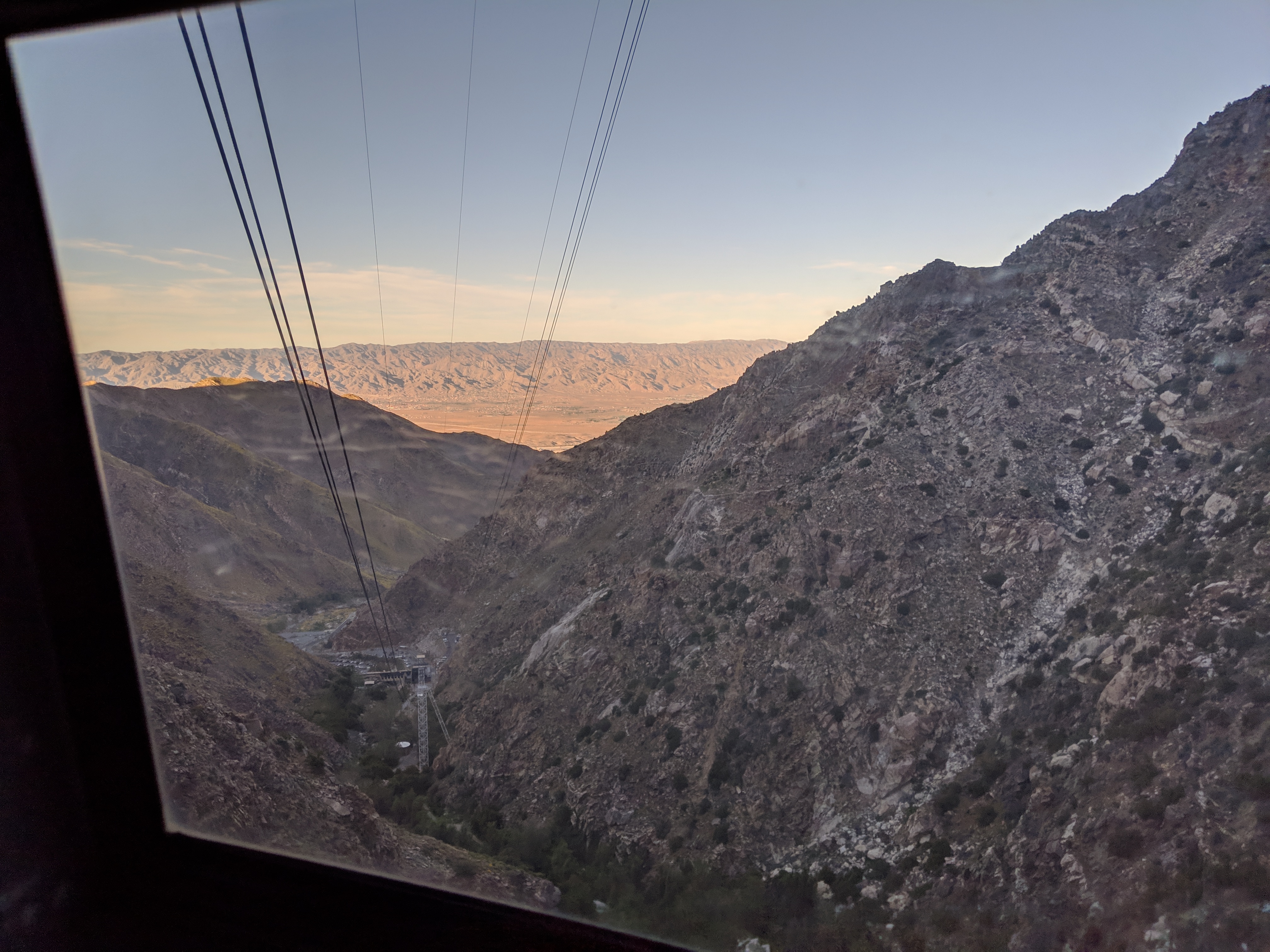 As evening approached, we headed back into town to come at the San Bernardino Forest from the other direction. There is an aerial tramway right up the mountain from town. It was beautiful at the top, but I was not into the ride myself! It’s a slow but extremely steep ride, going up about 5,000 feet in elevation over 10 minutes, and each time you pass a tower, it shimmies.
