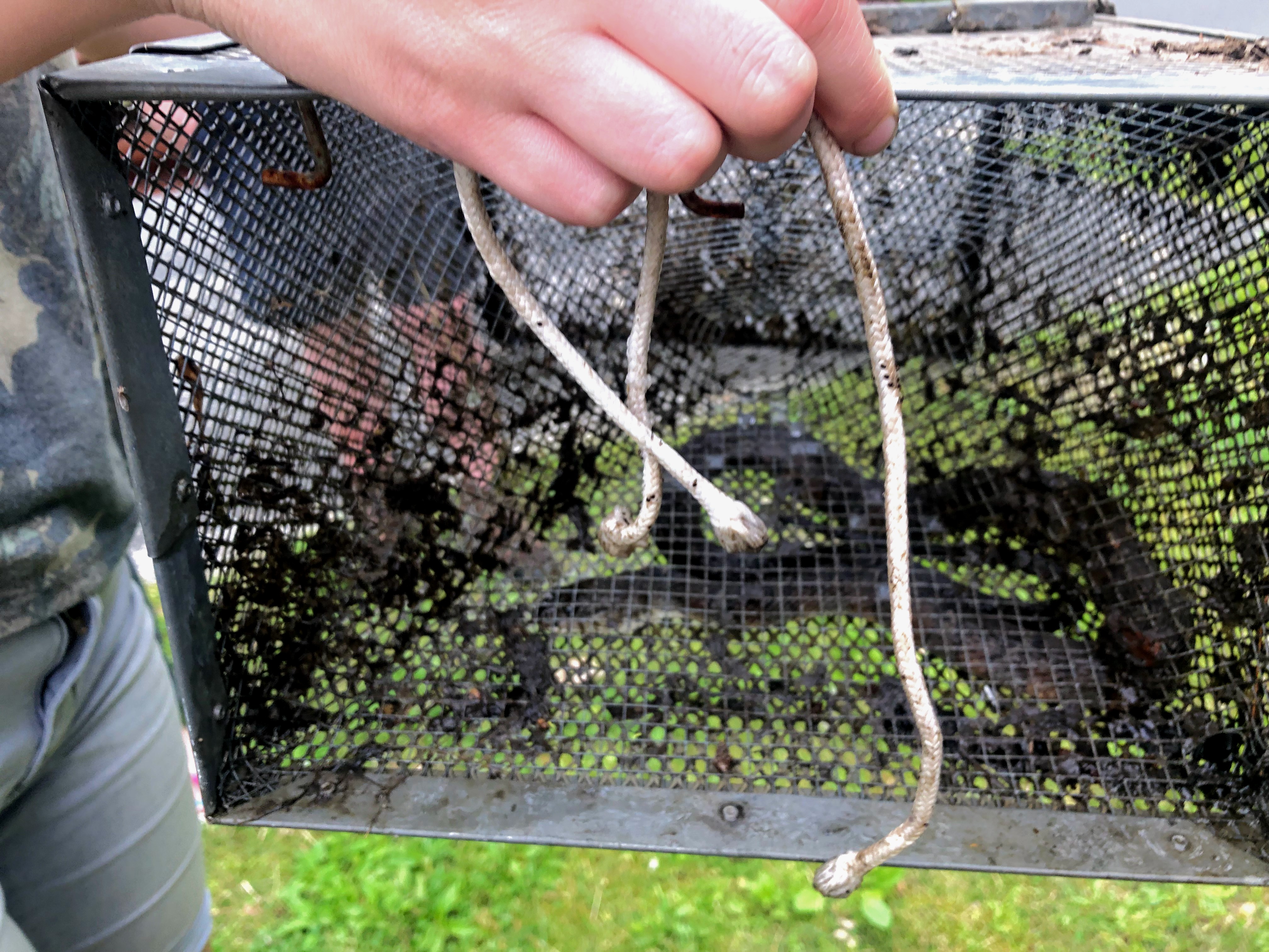 To find animals that haven’t been fitted with a transmitter, there are various approaches. One that we used for both amphibians and water snakes is the funnel trap. It’s a pretty basic design–one or more funnels direct animals into the trap, then it’s hard for them to locate the small hole to get out.